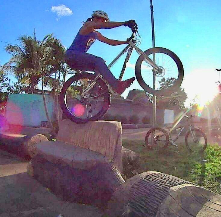 Mas em dezembro de 2016 conseguiu pegar a sua primeira bike trial puro sangue, era uma bike simples com o quadro reformado, mas já era uma evolução.
